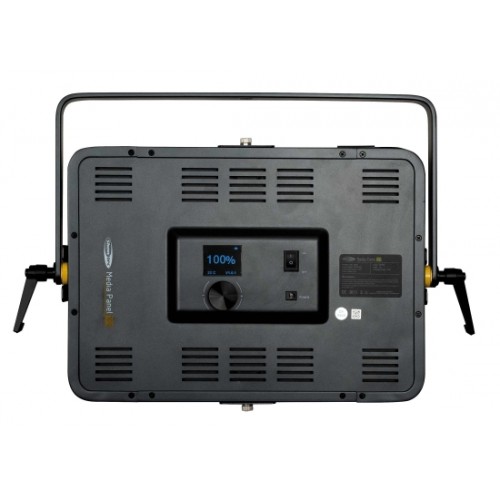 Das Showtec Media Panel 100 ist ein helles 100 Watt Daylight White Video-LED-Panel mit einem hohen >98 CRI und 143° Abstrahlwinkel, geeignet für verschiedene Studio- und Videoanwendungen. Seine stabile und hochpräzise 5000 K Farbtemperatur mit einer maximalen Lichtleistung von 7800 Lumen eignet sich ideal als Kurzdistanz-Medienlichtlösung für Vlogger, Streamer und Webinar-Moderatoren. Das Media Panel 100 verfügt über eine einfache manuelle Dimmfunktion durch den großen Drehknopf und die LED-Anzeige auf der Rückseite. Es wird mit einer stabilen Halterung mit verstellbaren Klemmgriffen für ein schnelles mobiles Setup, einem vierblättrigen Barndoor, einem Spigot-Adapter und einem Netzadapter geliefert. Für den mobilen Einsatz ist ein V-Mount Batteriehalter optional erhältlich.