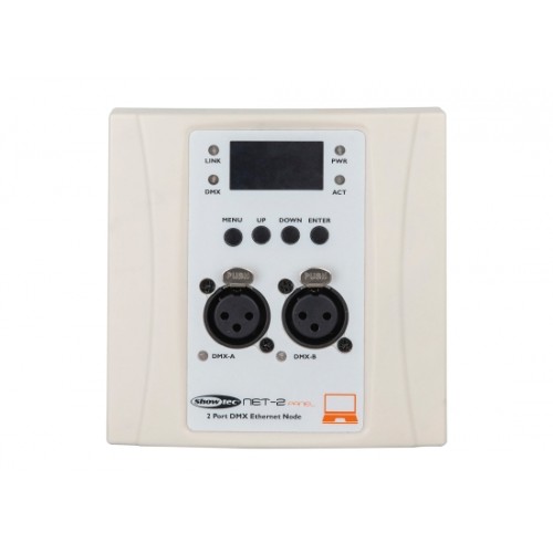 Die Showtec NET-2 Panel-Nodes sind hochmoderne Netzwerk-Routing-Geräte, die ArtNET oder sACN in DMX512 und zurück konvertieren. Diese Wandpanels sind ideal, um mehrere Patch-Punkte für DMX-Ein- oder -Ausgänge in Ihrem professionellen Theater, Ihrer Schule, Universität, Kongresshalle, Ihrem Club oder Ihrer Kirche herzustellen. Die Stromversorgung kann einfach über den NET-5-PoE-Schalter oder über ein lokales kleines Netzteil in der Wand erfolgen. Maximal 1024 Kanäle können über einen einzigen CAT5 transportiert werden. Alle Einstellungen können über das einfach zu bedienende Menü auf dem Grafikdisplay und den Tasten auf der Vorderseite oder über die im Netzwerk zugängliche Remote-Webschnittstelle vorgenommen werden. Standard-Anmeldekonto: Admin, Kennwort: Admin. Als DMX-Eingangspunkt können Sie ihn als normalen Eingang oder als Backup-Eingang verwenden. Die DMX-Ausgabeoptionen sind normal, wobei HTP/LTP zusammengeführt wird. Das NET-2-Paneel passt in eine normale 3,5"-Rückwandbox oder eine europäische U50-Wandbox.