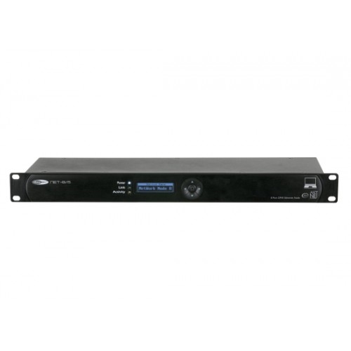 Die Showtec NET-8/5 und NET-9/5 Nodes sind moderne Netzwerk-Router, die Artnet- und DMX-512-Signale und umgekehrt verwandeln können. Über ein einfaches CAT5-Kabel können maximal 4096 Kanäle übertragen werden. Dadurch ist der NET-8/x sowohl für kleine als auch größere Events geeignet. Der NET-8/x enthält einen eingebetteten Netzwerk-Switch, was es ermöglicht, ihn als Netzwerkrepeater zu nutzen, sowie 8 isolierte DMX-512-Universen, die als Ein- oder Ausgang verwendet werden können. Alle Einstellungen können im übersichtlichen Menü auf dem grafischen Display mit den Tasten auf der Vorderseite vorgenommen werden.