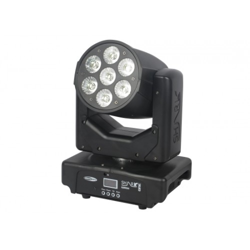 Ausgestattet mit sieben Q6 LEDs, alle mit RGBWA-UV Farben, erzeugt dieses kleine Moving Head unzählige Farbmischmöglichkeiten. Darüber hinaus sorgen speziell entwickelten Optiklinsen, für eine hervorragende Strahlprojektion. Aufgrund seiner kompakten Maße, kombiniert mit den 25-Grad-Objektiven, ist der Shark Wash One sehr gut geeignet für Veranstaltungsorten mit niedrigen Decken.
