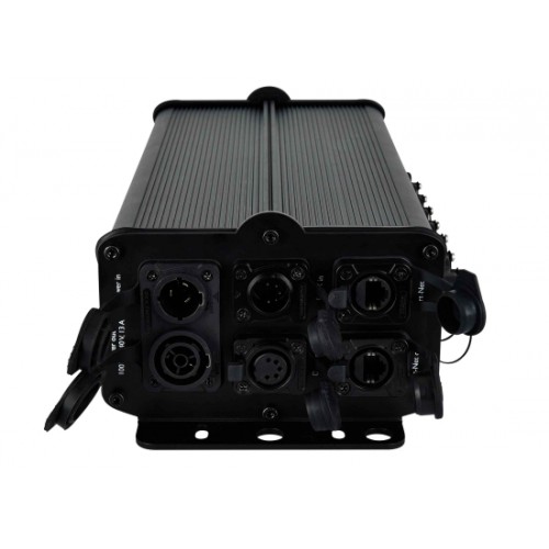 Die Showtec Steuerung für Octostrip FLEX ist eine IP65-zertifizierte Steuerung, die bis zu 8 Showtec Single Strips für Octostrip FLEX steuern kann. Sie kann die 1-m- und 0,5-m-Versionen steuern (das Kombinieren beider Längen ist nicht möglich). Die Steuerung unterstützt Art-Net und DMX, verfügt aber auch über eigenständige Modi mit integrierten Farbvoreinstellungen und Farbsequenzen. Sie verwendet 5-polige XLR-DMX-Anschlüsse und Power Pro True-Stromanschlüsse. Sie hat ein robustes Aluminiumgehäuse mit mehreren Montageoptionen.