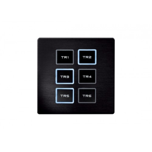 Die Zwei-Wege-Kommunikation zwischen der Wandpanel-Fernbedienung und dem TR-512 Install ermöglicht eine visuelle Rückmeldung über die aktiven Sequenzen und welche Shows enden werden. Sie können die richtige Taste auch im Dunkeln leicht finden. Das liegt daran, dass sie mit einer Tastenbeleuchtung ausgestattet ist. Die Wandtafel-Fernbedienung wird direkt vom TR-512 Install Modul über ein RJ45-Datenkabel mit Strom versorgt.
