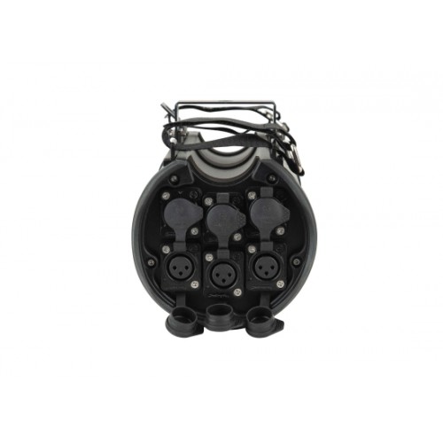 Der Booster IP 1-4 ist eine kompaktes und raffiniertes Gerät zum Splitten und Verstärken von DMX- oder RDM-Signalen. Die Befestigung an Traversen oder Rohren erfolgt über die Halterung oder über Klettverschlussriemen, die durch die vier Schlitze gezogen werden können. Ein Gummiring auf beiden Seiten des stabilen Gehäuses macht den Booster ideal für mobile Anwendungen, während die Schutzart IP65 ihn auch für den Einsatz im Freien geeignet macht.