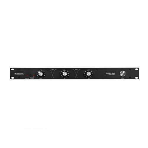 3-Band-Frequenzisolator mit Vintage-Drehpotis für DJsMit dem ISO-23 MK2 Frequenzisolator von Omnitronic erhalten DJs ein effektives Werkzeug zur Klangbearbeitung im Club oder im Studio. Das rackfähige Gerät bietet hochwertige, langlebige ALPS-Potentiometern RK27 und hervorragende Klangeigenschaften. Mit seinen großen, fein aufgelösten Drehreglern ist es möglich, Bässe, Mitten und Höhen zu betonen oder komplett auszulöschen. Dadurch lassen sich mühelos Acapella- und Instrumentalversionen erzeugen. Der Isolator stellt XLR- und Cinch-Anschlüsse zur Verfügung ist zudem mit einem Bypass-Taster für die Überbrückung ausgestattet.3-Band-Frequenzisolator mit Kill-Funktion und Bypass für DJs