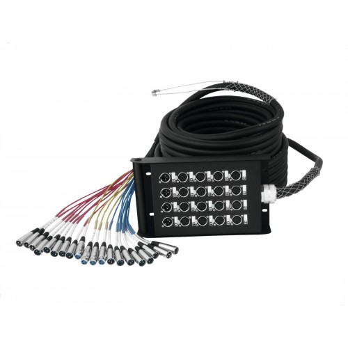 - Hochflexibles 30 m Multicore-Kabel mit Farbkennzeichnung, aufgespleißt in 16 Stecker und 4 Kupplungen