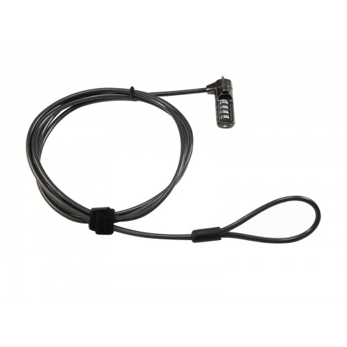 Mit diesem Notebookschloss können Sie verschiedene Geräte wie Notebook, Beamer, Monitor, Akku-Geräte sichern. Das 1,80 m lange Stahlkabel mit Kunststoffummantelung und 4-stelligem Zahlenschloss lässt sich ganz einfach um Gegenstände, wie z.B. Trussing oder Ähnliches, befestigen und sichert somit Ihr Gerät gegen Diebstahl.Kabelschloss zur Gerätesicherung