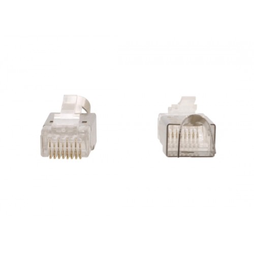 Der geschirmte RJ−45 Crimp−Stecker ist für das 23AWG CAT 6 Kabel vorgesehen, eignet sich aber auch für 24AWG Kabel. Alle STP−Kabel (Shielded Twisted Pair) benötigen geschirmte Stecker.