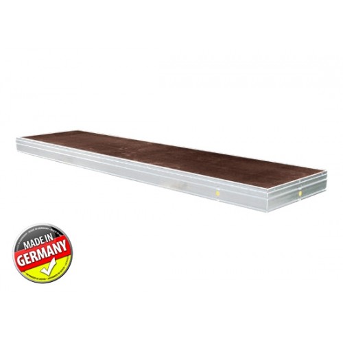 SweetPRO Steckfußpodest mit Aluminium-Chassis und robuster, wetterfester Siebdruckbodenplatte.