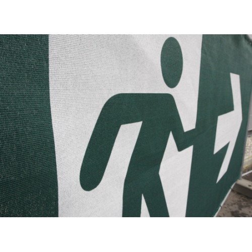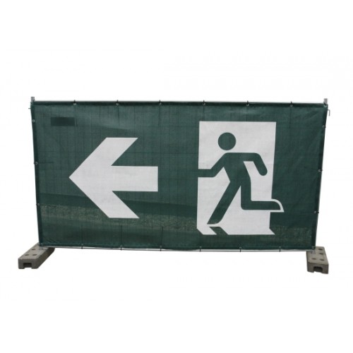 Das SweetPRO Orientierungsbanner ist mit einem Notausgang sowie einem Pfeil nach links bedruckt. Flucht- und Rettungswege lassen sich hiermit gut sichtbar kennzeichnen und gewährleisten höchste Sicherheit bei jedem Event. Mit den Maßen von 3,40x1,75m ist die Gaze passgenau für einen Bauzaun ausgelegt. Dank der verstärkten und geösten Ränder, lässt sich die Bauzaungaze problemlos mit Spannfix oder Kabelbinder befestigen.