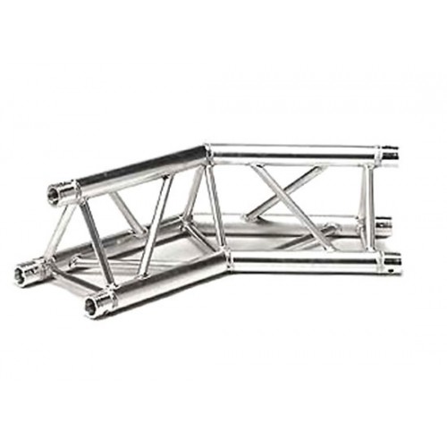 Der 3-Punkt Aluminium-Winkel findet aufgrund seiner leichten und optisch ansprechenden Bauweise Verwendung auf kleinen Bühnen, sowie im Werbe- und Architekturbereich. Die Winkel werden über konische Verbindungselemente und Kegelstifte mit den Traversen verbunden.