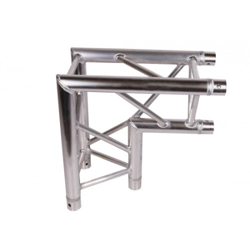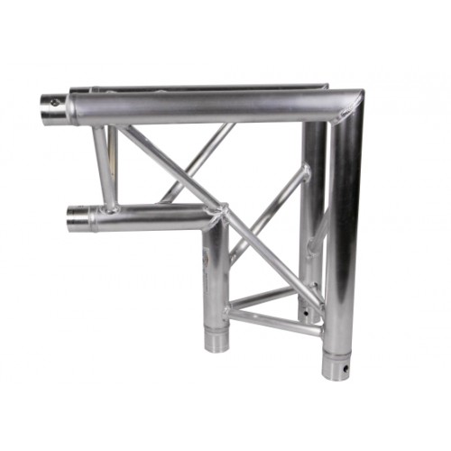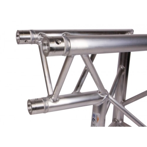Der 3-Punkt Aluminium-Winkel findet aufgrund seiner leichten und optisch ansprechenden Bauweise Verwendung auf kleinen Bühnen, sowie im Werbe- und Architekturbereich. Die Winkel werden über konische Verbindungselemente und Kegelstifte mit den Traversen verbunden.