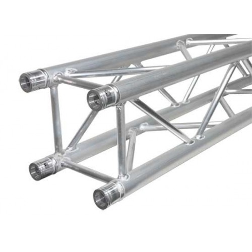 Die 4-Punkt Aluminiumtraverse findet aufgrund ihrer leichten und optisch ansprechenden Bauweise Verwendung auf kleinen Bühnen, sowie im Werbe- und Architekturbereich. Die Traversen werden über konische Verbindungselemente mit Kegelstiften untereinander verbunden.