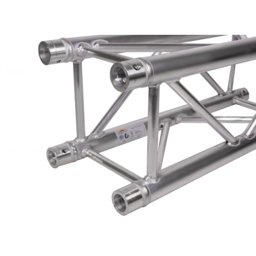 Die 4-Punkt Aluminiumtraverse findet aufgrund ihrer leichten und optisch ansprechenden Bauweise Verwendung auf kleinen Bühnen, sowie im Werbe- und Architekturbereich. Die Traversen werden über konische Verbindungselemente mit Kegelstiften untereinander verbunden.