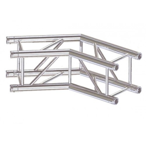 Der 4-Punkt Aluminium-Winkel findet aufgrund seiner leichten und optisch ansprechenden Bauweise Verwendung auf kleinen Bühnen, sowie im Werbe- und Architekturbereich. Die Winkel werden über konische Verbindungselemente und Kegelstifte mit den Traversen verbunden.