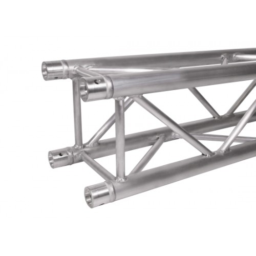 Die 4-Punkt Aluminiumtraverse findet aufgrund ihrer hohen Tragfähigkeit und leichten Bauweise Verwendung auf kleinen Bühnen, sowie im Werbe- und Architekturbereich. Die Traversen werden über konische Verbindungselemente mit Kegelstiften untereinander verbunden.