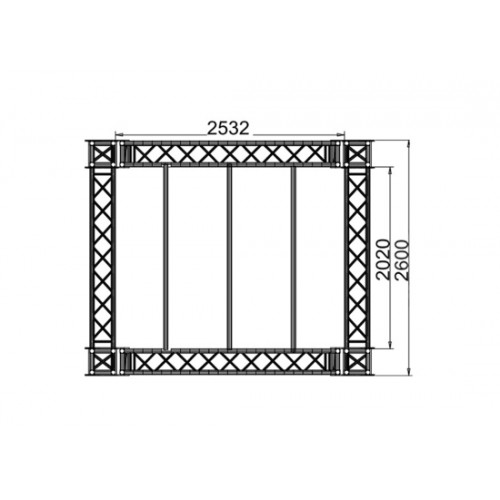 - Traversensystem: KV4/290 290x290 (4 Punkt), 50x2mm Tragrohren; 20x2mm Füllstäbe