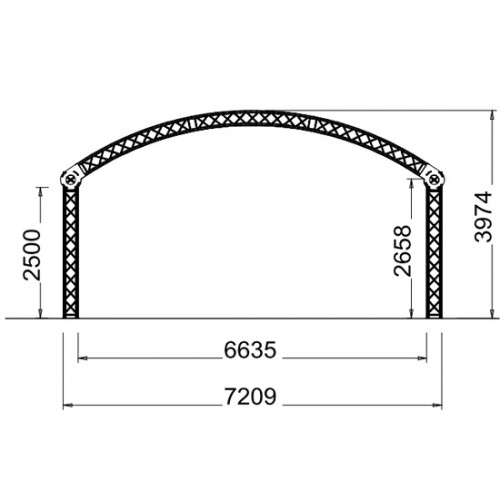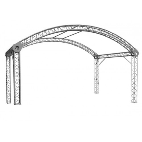 Ein Rundbogendach kann als elliptischer Querschnitt angesehen werden und ist im Vergleich zum Tonnendach weniger gewölbt. In diesem Fall setzt sich das Sweettruss RD 6040 Varia Rundbogendach aus dem Traversensystem der Marke Sweettruss zusammen. Es ist ein fertig zusammengestelltes Set, welches in vier verschiedenen Größen erhältlich ist und zu den jeweilig zugehörigen Bühnen passt.