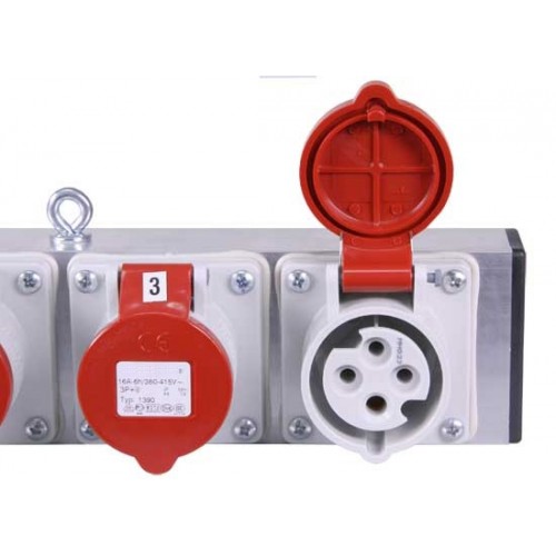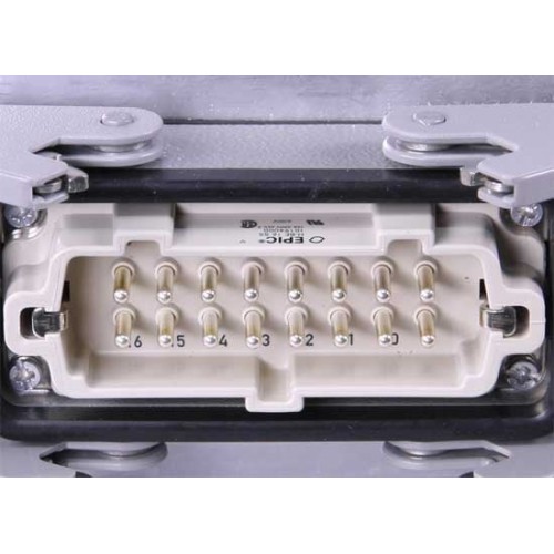 Die Splitbox wird über ein 16-pol Harting Lastkabel mit dem Controller und über ein CEE 4-pol Motorkabel mit dem Motorkettenzug verbunden.