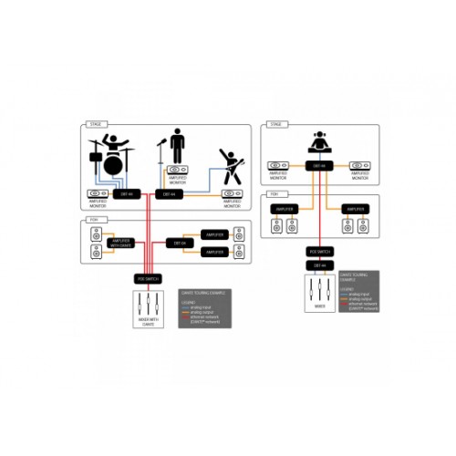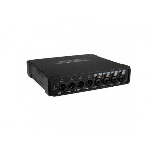 Das DBT-44 von Synq Audio ist eine hochwertige Analog-/DANTE®-Netzwerk-Audio-Bridge für Touring-Anwendungen mit 4 analogen Eingängen + Ausgängen.