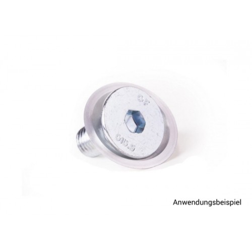 Lege den Ring einfach zwischen die M10-Schraube und die Grundplatte, um den Platz zu verringern, den du normalerweise hättest, weil du eine kleinere Schraube verwendst.