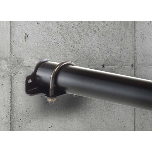 Mit dieser Halterung können die Rohre eines Gitters fest an der Wand montiert werden. Diese Halterung dient zur Befestigung eines Rundrohrs (48 bis 51 mm Durchmesser) an der Wand. Die Montageplatte ist mit 3 Löchern versehen, um eine einfache Montage an der Wand zu ermöglichen. Ein Drahtbügel verbindet das Gitterrohr mit der Halterung.