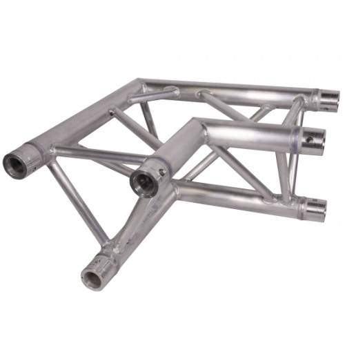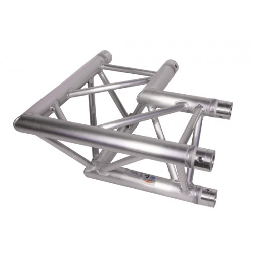 Der 3-Punkt Aluminium-Winkel findet aufgrund seiner leichten und optisch ansprechenden Bauweise Verwendung auf kleinen Bühnen, sowie im Werbe- und Architekturbereich. Die Winkel werden über konische Verbindungselemente und Kegelstifte mit den Traversen verbunden.