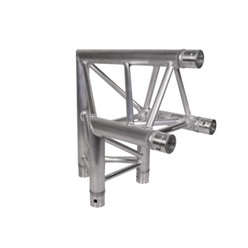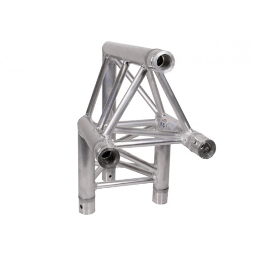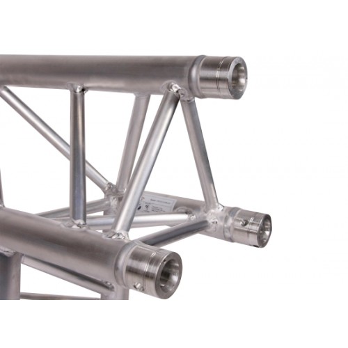 Sweettruss KV3/290-C 3-Punkt Winkel, gefertigt aus 50 x 2 mm Tragrohr und 20 x 2 mm Füllstäben. Der 3-Punkt Aluminium-Winkel findet aufgrund seiner leichten und optisch ansprechenden Bauweise Verwendung auf kleinen Bühnen, sowie im Werbe- und Architekturbereich. Die Winkel werden über konische Verbindungselemente und Kegelstifte mit den Traversen verbunden. Sonderkonstruktionen sind in fast allen Abmessungen und Ausführungen lieferbar.