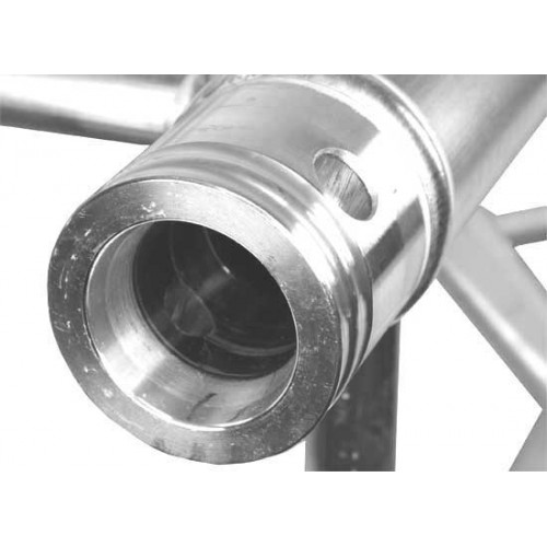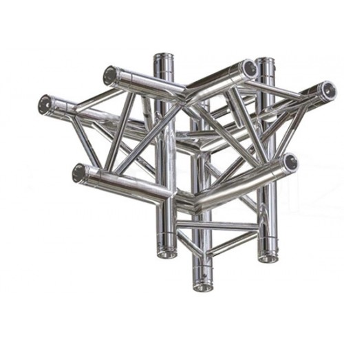 Das 3-Punkt Aluminium-Eckstück findet aufgrund seiner leichten und optisch ansprechenden Bauweise Verwendung auf kleinen Bühnen, sowie im Werbe- und Architekturbereich. Die Ecken werden über konische Verbindungselemente und Kegelstifte mit den Traversen verbunden.