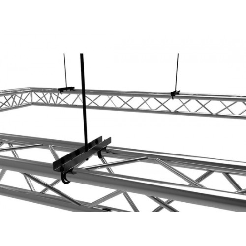 Der Montagewinkel ist für die dauerhafte Befestigung von Traverse an der Decke vorgesehen. Die Halterung wird mit Drahtklammern an den Traversenträgern befestigt. Die Montage an der Decke kann mittels einer oder zwei Gewindestangen erfolgen. Mit dieser Halterung kannst du eine 30er Traverse (Quadrat oder Dreieck) an die Decke hängen.
