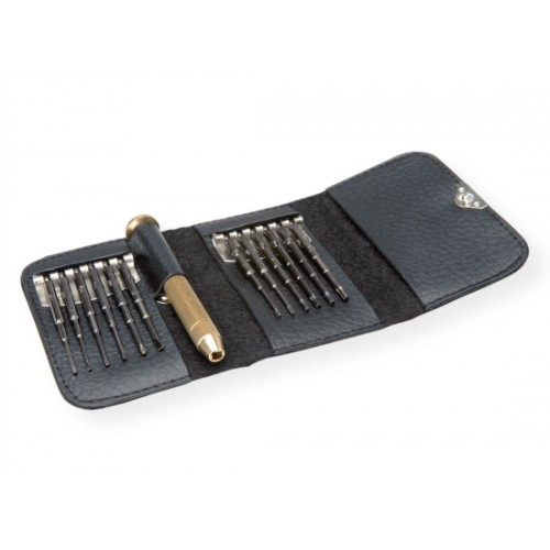 Schraubendreher-Set für Feinmechaniker, inkl. Schraubendreher-Griff mit Schraubspitze, Kreuzschlitz-Einsätze, Schlitzschrauben-Einsätze, Innensechsrund-Trx-Einsätze und verschliessbares Mäppchen.