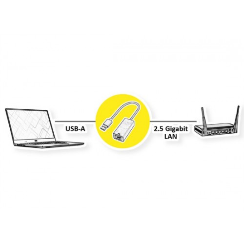Mit diesem Konverter schließt du deinen PC oder dein Notebook mit USB Typ A Schnittstelle an ein Netzwerk mit bis zu 2,5 Gigabit Ethernet an.