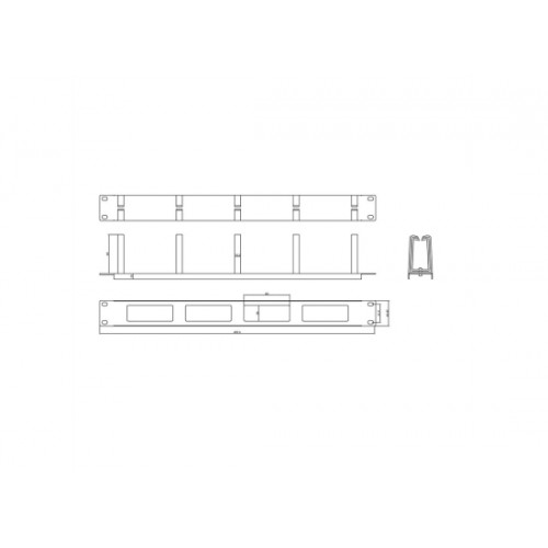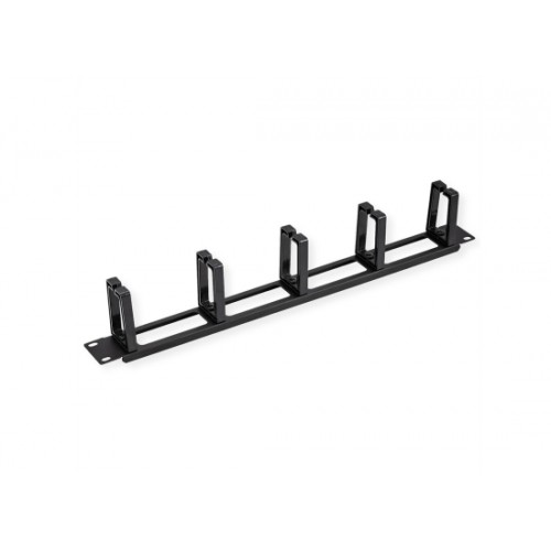 19"-Kabelführung 1HE, 5 Ösen Typ C, schwarz, mit Kabeldurchführung