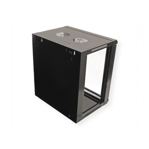 Die VALUE Wandgehäuse beweisen, dass solch praktische Lösungen auch attraktiv sein können. Die schwarzen, leicht glänzenden Gehäuse sind durchaus bürotauglich. Ein großzügiger Glaseinsatz in der Tür erlaubt auch bei geschlossener Tür freien Blick auf alle eingebauten aktiven und passiven Komponenten. Sowohl Tür als auch die Seitenwände können abgenommen werden, was optimalen Zugang ins Gehäuse-Innere ermöglicht; die Kabelzuführung kann von oben oder unten erfolgen. Die Tür der VALUE Wandgehäuse kommt mit abschließbarem Schwenkhebel.