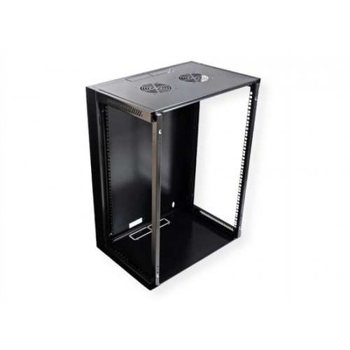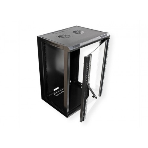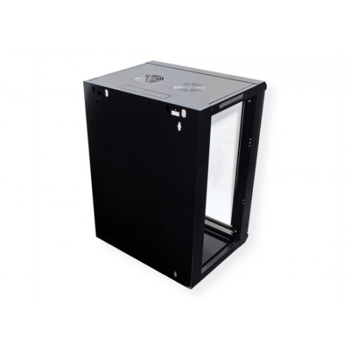 Die VALUE Wandgehäuse beweisen, dass solch praktische Lösungen auch attraktiv sein können. Die schwarzen, leicht glänzenden Gehäuse sind durchaus bürotauglich. Ein großzügiger Glaseinsatz in der Tür erlaubt auch bei geschlossener Tür freien Blick auf alle eingebauten aktiven und passiven Komponenten. Sowohl Tür als auch die Seitenwände können abgenommen werden, was optimalen Zugang ins Gehäuse-Innere ermöglicht; die Kabelzuführung kann von oben oder unten erfolgen. Die Tür der VALUE Wandgehäuse kommt mit abschließbarem Schwenkhebel.