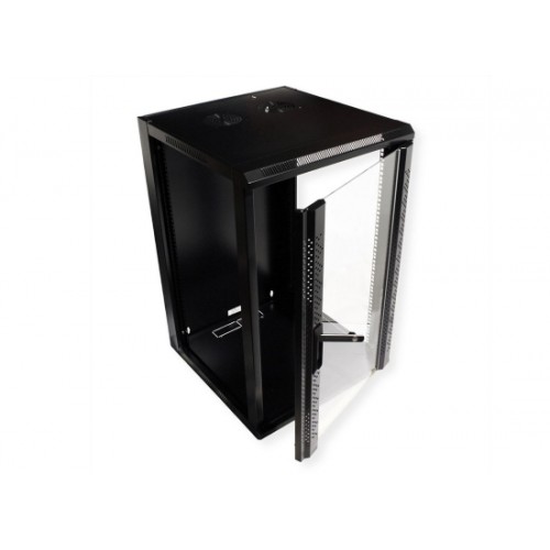 Die VALUE Wandgehäuse beweisen, dass solch praktische Lösungen auch attraktiv sein können. Die schwarzen, leicht glänzenden Gehäuse sind durchaus bürotauglich. Ein großzügiger Glaseinsatz in der Tür erlaubt auch bei geschlossener Tür freien Blick auf alle eingebauten aktiven und passiven Komponenten. Sowohl Tür als auch die Seitenwände können abgenommen werden, was optimalen Zugang ins Gehäuse-Innere ermöglicht; die Kabelzuführung kann von oben oder unten erfolgen. Die Tür der VALUE Wandgehäuse kommt mit abschließbarem Schwenkhebel.