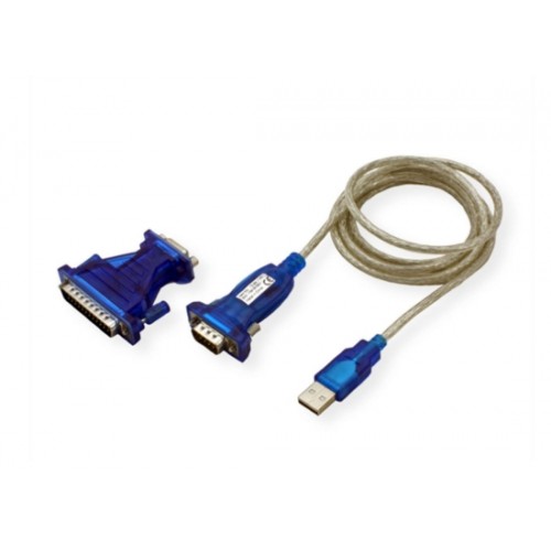- Anschlüsse: 1x USB Typ A, 1x DB 9pol. Stecker bzw. DB 25pol. Stecker