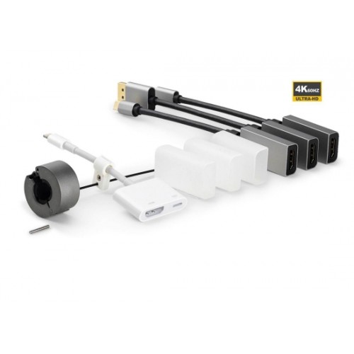 Mit dem Adapterring, der am HDMI-Kabel im Besprechungsraum befestigt wird, kannst du sicher sein, dass alle deine Gäste ihren Laptop an Ihren Monitor/Projektor anschließen können