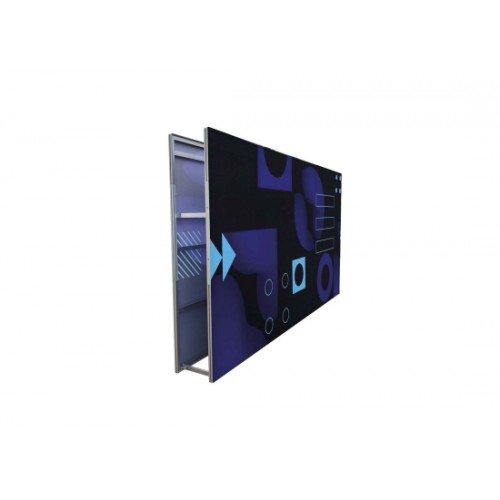 Der Wentex SET Rahmen besteht aus leichtem Aluminium-Textilrahmensystem und ermöglicht den schnellen und einfachen Aufbau von Messe- und Projektionswänden. Das modulare System ist äußerst flexibel und kann eine Höhe von bis zu 6 Metern erreichen. Sie können den Rahmen stufenlos verstellen. Darüber hinaus können Sie beide Seiten als Projektionsfläche verwenden oder einen Zwischenraum schaffen, in dem Sie nahtlos LED-Bildschirme anbringen können. Das ist die ideale Spannrahmenlösung für Spann-/Textilgewebe (SEG-Grafiken) auf Konferenzen, Messen, Ausstellungen, Seminaren und in Fernsehstudios.