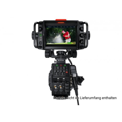 Ob du im Studio oder an weitläufigen Veranstaltungsorten wie einem Stadion mit Live-Drehs zugange bist, der Blackmagic URSA Studio Viewfinder bietet alles Nötige für komfortables Arbeiten mit deiner URSA Mini bei Liveproduktionen. Mit abnehmbarer Gegenlichtblende, großen Griffen und Schwenkgelenk ist der helle 7-Zoll-Bildschirm perfekt ausgestattet, um Suchermonitor und Kamera unabhängig voneinander zu bewegen und ersteren in Position zu bringen. Die großen Drehregler und benutzerdefinierbare Funktionstasten lassen dich Änderungen spontan ausführen, ohne die Action aus dem Blick zu verlieren. Mit der integrierten V-Lock-Platte geht das Setup schnell und einfach. Sie wird direkt an den SDI-Monitor und die Strombuchse Ihrer URSA Mini angeschlossen. Zusätzliche Kabel oder Netzadapter sind nicht nötig.