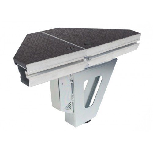 Je nach Bühnenhöhe besteht die Möglichkeit, die Rampe aus zwei oder drei StageDex-Teilen zusammenzusetzen. Die Anzahl der sequentiell verbundenen StageDex und die Höhe der Bühne bestimmen die Neigung der Rampe. Der Admiral Ramp Support eignet sich für Bühnen mit einer Höhe von 40 cm bis 140 cm und einer Erhöhung um 20 cm. Ramp Supports sind so konzipiert, dass sie immer standardmäßige StageDex-Steckfüße verwenden. Es gibt drei Arten von Rampenunterstützung, die viele verschiedene Kombinationen bieten. Um eine Rampe mit dem Admiral Ramp Support zu bauen, ist ein Haken am Profil erforderlich. Mit dem Ramp Support wird das erste Deck auf die Bühne gehakt.